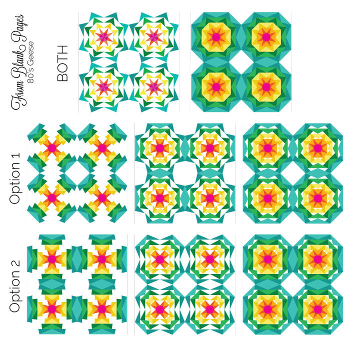 The 80's Geese paper piecing pattern is an upgraded pattern to the 70's Geese pattern. With the ability to create many of the same designs possible with the 70's Geese pattern, this pattern also includes many more options!!